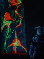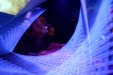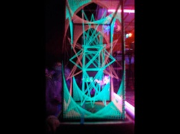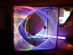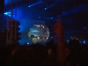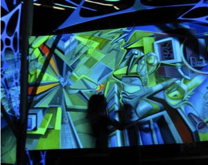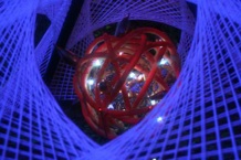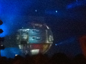 He is inside the sphere, which used as a screen to project clips