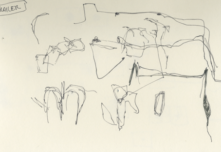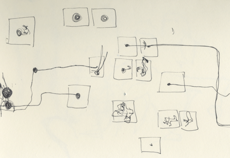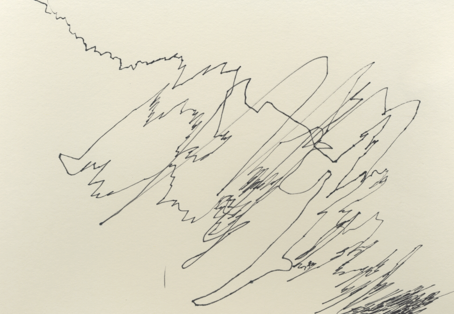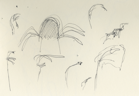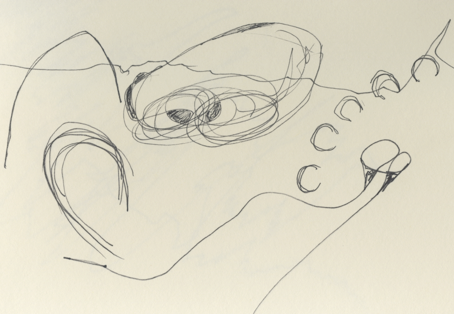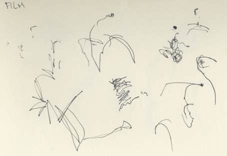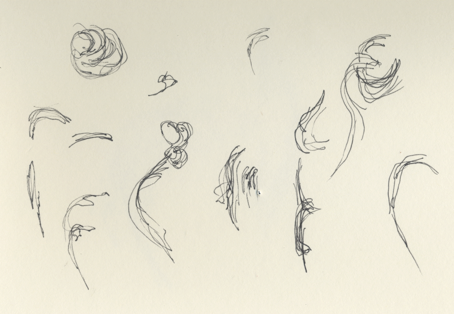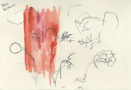 It’s really interesting to draw the movement of the audience in a cinema because it’s dark so you don’t really see what you are drawing (just concentrate on the movement of the people). Also, it’s really small movement so you need to be attentive to see it. For that I choose a strategic seat in the cinema : at the top in a corner so I can see all the audience. it’s a lot of repetitive movement (people drinking, eating, speaking...).