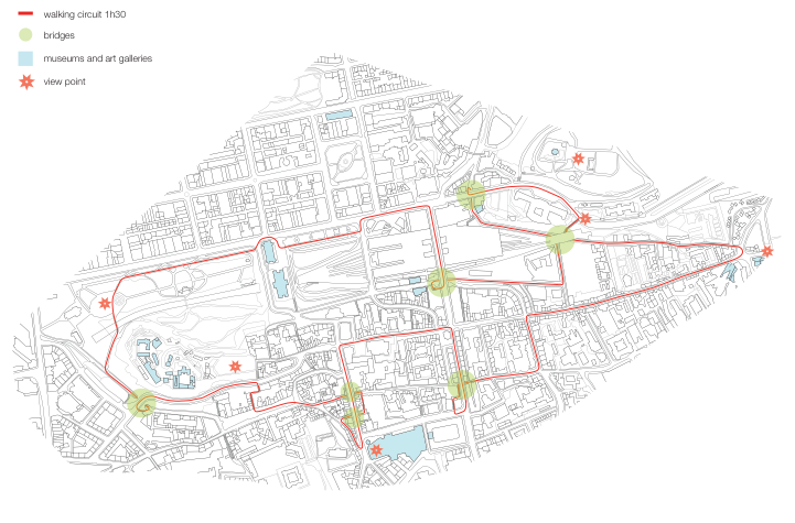 To encourage interest in art, and wider, interest of others, a circuit linking the different ‘art places’ in the city centre has been traced. The walk come past the 7 arches, going under and over each of them. It gives an other view of the city, following hidden paths.