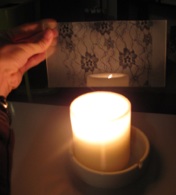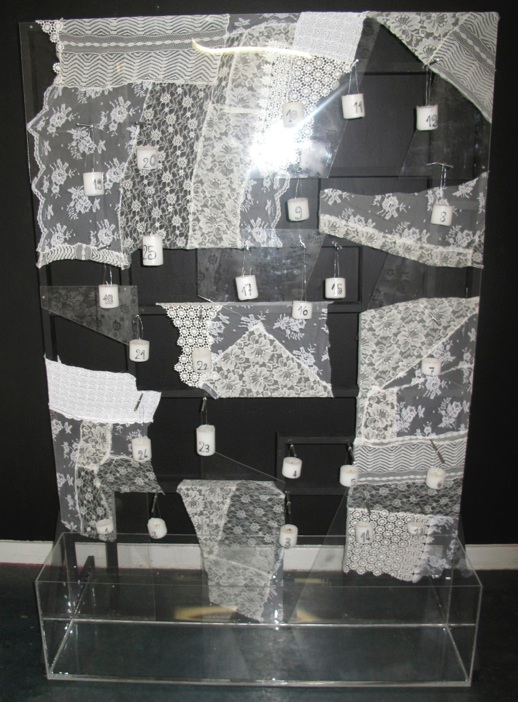 Utilisation of lace, sand blasting on plexiglass, creation of the structure in wood and candles.