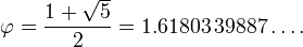 where the Greek letter phi represents the golden ratio. Its value is: